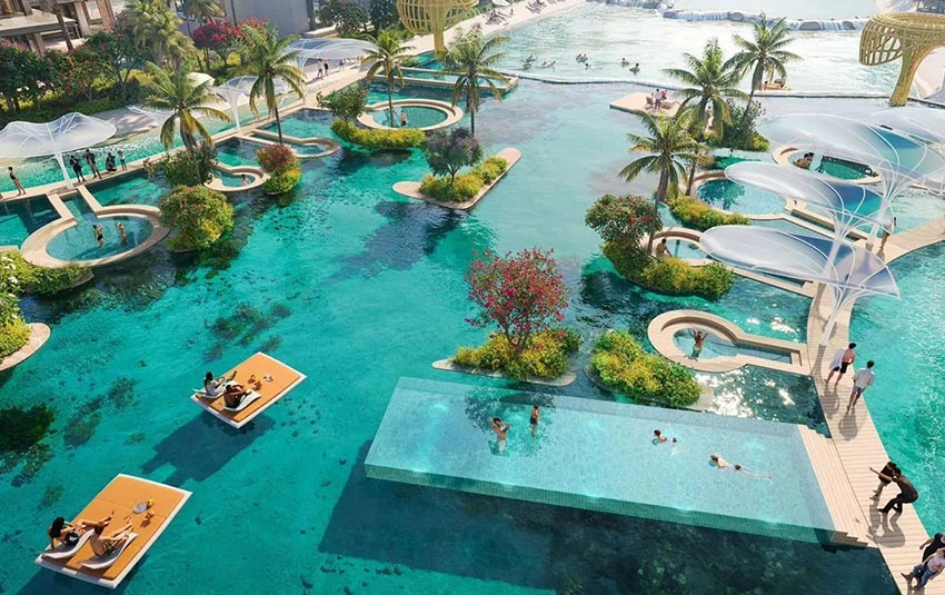 - Swimming pools and family splash zones